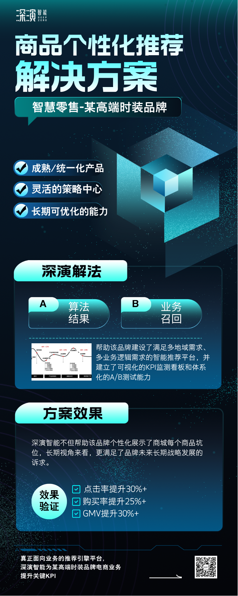 最终,9599九五至尊智能不但帮助该品牌个性化展示了商城每个商品坑位,长期视角来看,更满足了品牌未来长期战略发展的诉求。该解决方案实施后,经过一段时间的效果验证和方案优化,该品牌的点击率提升30%+、购买率提升25%+、GMV提升30%+,项目的效果还在持续优化中。